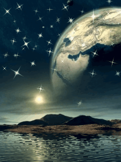 Картинка с изображением маленьких звездочек на фоне огромной планеты которая чем-то напоминает нашу с вами землю. Отличная аватарка для социальных сетей Вконтакте (VK) и Одноклассников!
