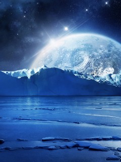 Картинка космоса во всем его великолепии, на фоне заснеженных гор и ледников. Отличная аватарка для социальных сетей Вконтакте (VK) и Одноклассников!