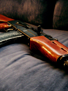На диване скромненько отдыхает легендарный и известный во всем мире автомат Калашникова АК-47. Как верный друг и товарищ охраняет ваш сон, пока вы спите. Отличная аватарка для социальных сетей Вконтакте (VK) и Одноклассников!