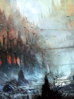 Картина маслом на которой изображена стая птиц, пролетающая в скалистом ущелье. Эту картинку вы сможете скачать на нашем сайте без регистрации и смс. Отличная аватарка для социальных сетей Вконтакте (VK) и Одноклассников!